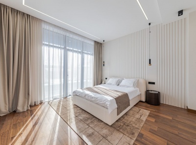 Продажа загородного дома площадью 500 кв.м. Новорижское шоссе, 24 км от МКАД. Коттеджный поселок Монтевиль. Дом построен в 2 этажа из кирпича. Выполнена дизайнерская отделка под ключ с мебелью, шторами и светильниками. Внутри дома царит светлая и уютная атмосфера. Планировка дома организована таким образом, чтобы обеспечить удобство и функциональность. Особое внимание стоит уделить панорамным окнам, которые создают ощущение простора и позволяют наслаждаться прекрасным видом на лесной участок площадью 12 соток.
