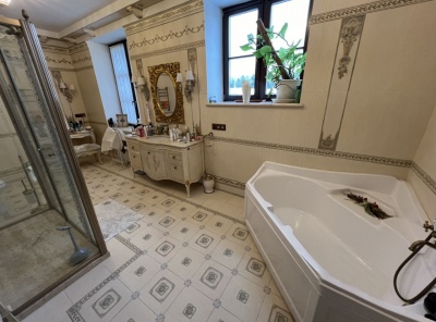 Продажа загородного дома общей площадью 550 кв.м. Коттеджный поселок Горки-6 Новорижское шоссе, 9 км от МКАД. Дом построен по индивидуальному проекту, только премиальные отделочные материалы и сантехника. Панорамные окна. Установлен лифт. На живописном лесном участке 13 соток находится отдельный дом для персонала, SPA-комплекс с сауной, хаммамом и зоной барбекю.