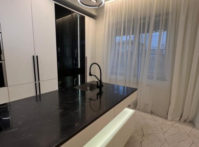 Аренда 3-комнатной квартиры площадью 140 кв.м. Метро Сокол, 5 минут пешком. Чапаевский переулок, дом 3. ЖК Триумф Палас. Квартира полностью меблирована. Эксклюзивная, дизайнерская итальянская мебель, выполненная на заказ. Ремонт выполнен в современном стиле. Имеется вся необходимая бытовая техника (Милле), подогрев полов и высокоскоростной интернет. Окна выходят во двоp и на улицу, а с 33 этажа открывается завораживающий панорамный вид на Москву.