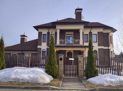 Продажа загородного дома общей площадью 1200 кв.м. Новорижское шосе, 14 от МКАД.Коттеджный поселок Павлово. Дом построен из кирпича в 3 этажа. Участок 50 соток с ландшафтным дизайном.