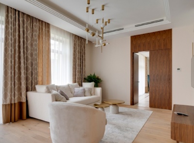 Аренда просторной 3 комнатной квартиры площадью 106кв.м. Новорижское шоссе 14 км от МКАД. Коттеджный поселок Павлово-2. Очень рациональная и удобная планировка. Выполнен качественный ремонт в современном сдержанном стиле. Полностью меблирована и оснащена отличной европейской, мебелью и техникой.Планировка: прихожая, холл, кухня-столовая, гостиная, 2 большие спальни, большой с/у, большая гардеробная, с/у.