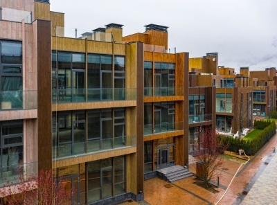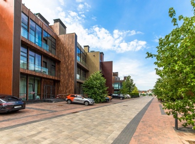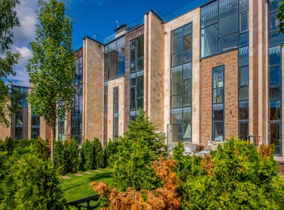 Продажа загородного таунхауса площадью 556 кв.м. Новорижское шоссе, 27 км от МКАД. Коттеджный поселок Парк Фонтэ. Современный таунхаус свободной планировки в 3 этажа с панорамным остеклением и выходом на эксплуатируемую кровлю. Под отделку. Высокие потолки 3,5 м. Участок площадью 4,4 сотки с живой изгородью.