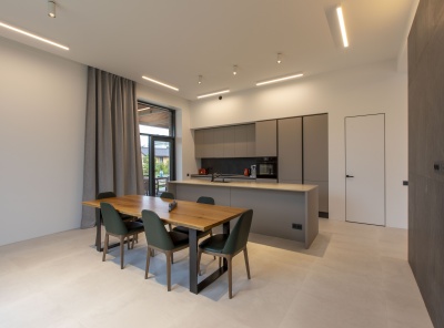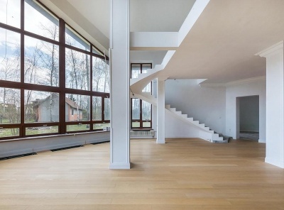 Продажа загородного дома площадью 390 кв.м. Новорижское шоссе, 27 км от МКАД. Коттеджный поселок Крона. Дом построен из кирпича в 2 этажа. Плоская кровля. Отделка фасадов – декоративная штукатурка, керамический кирпич. Панорамное остекление, стеклопакеты с алюминиевым профилем. В интерьере дома использованы дорогие, натуральные материалы. Дом оборудован системой кондиционирования. Участок 21 сотка. На участке высажены туи, сосны, декоративные растения.