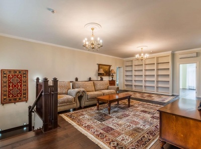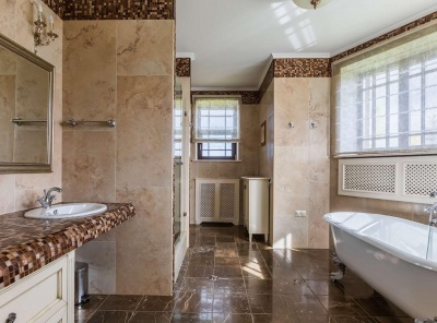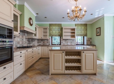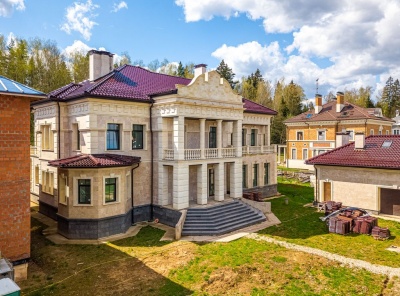 Продажа загородного дома общей площадью 440 кв.м. Коттеджный поселок Гринфилд. Новорижское шоссе, 23 км от МКАД. Дом построен в классическом стиле в 2 этажа, под ключ. Выполнена качественная отделка с использованием дорогих отделочных материалов: двери массив, пол мрамор и паркет из ценных пород дерева, ванные комнаты отделаны натуральным камнем, дорогая сантехника, итальянская кухня, центральная система кондиционирования, теплые полы. Элементы террасы отделаны итальянским песчанником.