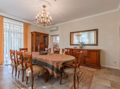 Продажа загородного дома общей площадью 500 кв.м. Новорижское шоссе, 23 км от МКАД. Коттеджный поселок Гринфилд. Дом построен из кирпича в 2 этажа. Фасад отделан штукатуркой и декоративным камнем. Внутри выполнен качественный, дорогой ремонт в классическом стиле. Полностью меблирован и укомплектован всей необходимой техникой. Участок 20,99 соток с ландшафтным дизайном, высажено множество кустарников и деревьев. Так же на участке расположена летняя беседка с BBQ.