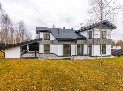 Продажа загородного дома в стиле современной классики общей площадью 385 кв.м. Новорижское шоссе, 14 км от МКАД. Коттеджный поселок Павлово-2. Дом построен под ключ в 2 этажа. Лаконичная архитектура в про-английском стиле с контрастными элементами оформления фасадов. На участке 21 сотка высажены сибирские кедры, пихта, эксклюзивная черная сосна, много плодовых деревьев.