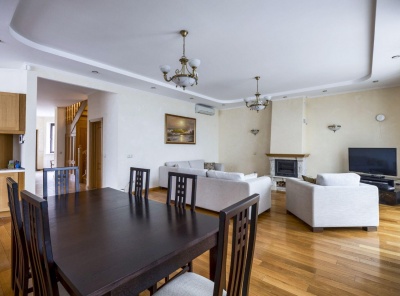Продажа загородного дома площадью 875 кв.м. Новорижское шоссе, 14 км от МКАД. Коттеджный поселок Пенаты. Дом построен в 5 уровней из кирпича с качественной отделкой в современном стиле под ключ, полностью меблирован и готов к проживанию. Дом для большой семьи. Спа-зона: сауна, джакузи, бассейн, массажная комната. Все коммуникации центральные. На участке 19 соток выполнен ландшафтный дизайн, гараж на 2 м/м.