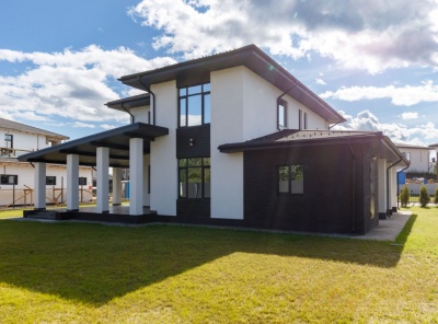 Продажа современного загородного дома общей площадью 474 кв. м. Новорижское шоссе, 23 км. от МКАД. Коттеджный поселок Онегино. Дом построен в 2 этажа, под ключ. Выполнен из высококачественных материалов. Стильный интерьер и функциональная планировка. Большой, ровный участок 20 соток с ландшафтным дизайном. Имеется навес на 2 м/м.Планировка:1 этаж - гостиная со вторым светом 6,5 м, кухня с выходом на террасу, сауна с зоной отдыха, спальня с с/у и гардеробной, с/у, гардеробная,2 этаж - холл, 3 спальни с с/у и гардеробными.