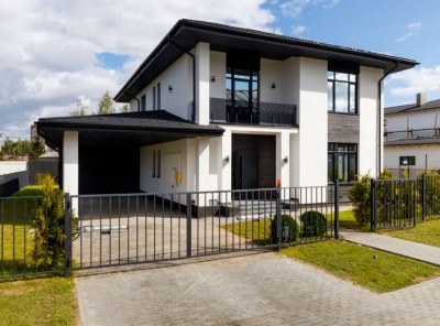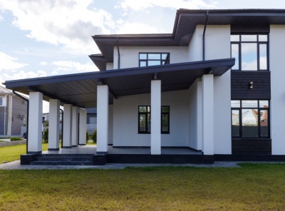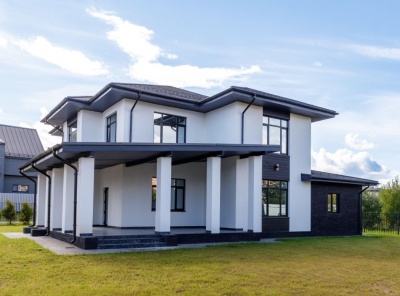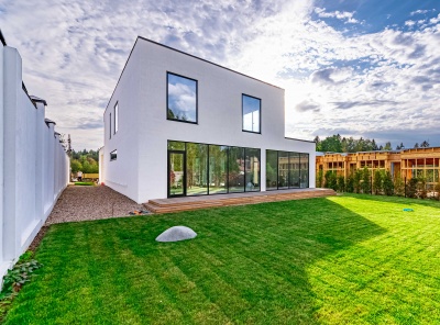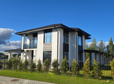 Продажа загородного дома площадью 248 кв.м. Коттеджный поселок Павловы Озера. Новорижское шоссе, 18 км от МКАД. Дом построен в 2 этажа. Элегантный фасад в минималистичном стиле, большие панорамные окна и продуманная планировка делают этот дом идеальным для комфортной жизни. Коттедж предлагается без отделки — вы сможете воплотить любые дизайнерские идеи. Участок 9 соток полностью подготовлен: выровненная территория, завезена плодородная земля, посажен газон и туи по фасаду.
