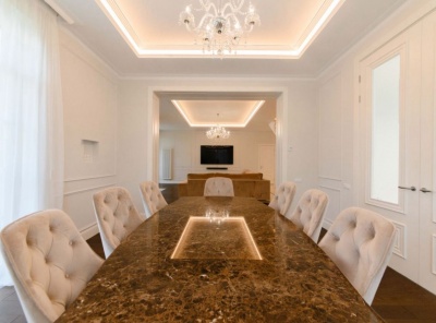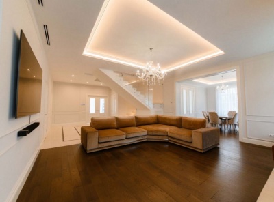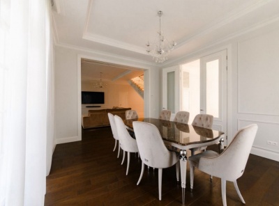 Продажа загородного дома общей площадью 425 кв.м. Новорижское шоссе, 23 км от МКАД. Коттеджный поселок Риверсайд. Коттедж построен в 2 этажа, под ключ. Дом с монолитными перекрытиями, фасад выполнен из натурального камня (песчаник/гранит), окна из лиственницы. В отделке использованы натуральные материалы: массив дуба, мрамор, травертин. Инженерные системы: Buderus, rehau,oventrop. В доме смонтирована и действует приточно-вытяжная система вентиляции и кондиционирования.