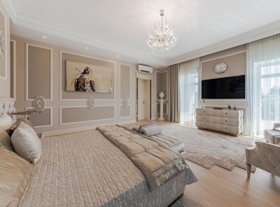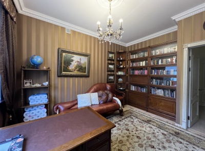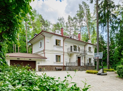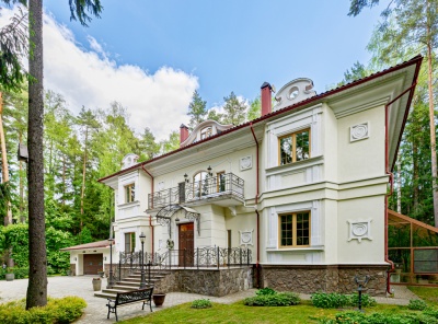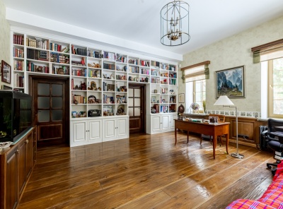 Продажа загородного дома площадью 800 кв. м. Минское шоссе, 11 км. от МКАД. Коттеджный поселок Грибово. Дом построен в 2 этажа, под ключ. Элегантный и сдержанный интерьер с элементами английской классики и прованса. Исключительно премиальные материалы (природный камень, дерево), встроенная бытовая техника на кухне известных брендов. На участке площадью 55 соток растут реликтовые хвойные деревья, есть дом для персонала, крытая беседка с BBQ, подведенными коммуникациями и с/у.