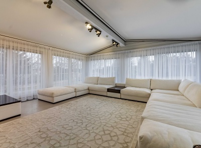 Продажа загородного дома площадью 640 кв. м. Минское шоссе, 11 км. от МКАД. Коттеджный поселок Грибово. Дом построен в 3 этажа, под ключ. Внутренний дизайн интерьеров выполнен в едином современном стиле. Все комнаты обставлены мебелью и техникой от премиальных европейских брендов: Armani, B&B Italia, Bulthaup, V-Zug, Gaggenau, Miele. Камин изготовлен из итальянского каррарского мрамора. Ванные комнаты оборудованы итальянской сантехникой Flaminia и KOS. Все комнаты залиты светом благодаря большим окнам и высоким потолкам.