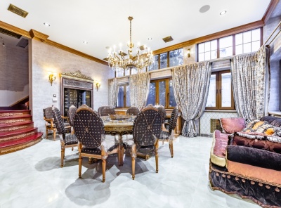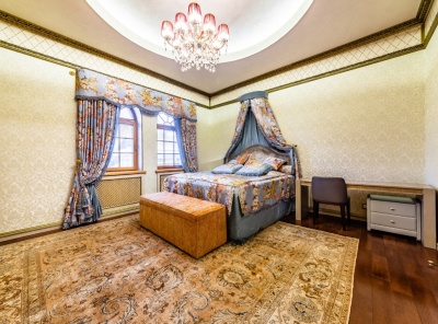 Аренда загородного дома общей площадью 570 кв.м. Коттеджный поселок Миллениум Парк. Новорижское шоссе, 19 км от МКАД. Дом построен в 3 уровня. Под ключ, с мебелью. На участке 23 сотки есть отдельно стоящий дом для персонала и беседка с зоной барбекю. Планировка:1 этаж - прихожая, гардеробная, кухня, столовая, гостиная с камином и выходом на закрытую террасу с зоной отдыха, 2 спальни, с/у, гараж на 2 м/м,2 этаж - спальня с 2 гардеробными и с/у, 2 спальни, гардеробная комната, с/у, постирочная,Мансарда - игровая, кабинет, библиотека, спальня, с/у.