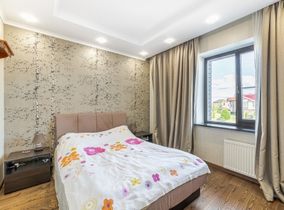 Продажа загородного нового дома площадью 355 кв.м. Новорижское шоссе, 23 км от МКАД. Коттеджный поселок Новорижский. Дом построен в 2 этажа из кирпича полностью под ключ. Фасад облицован дагестанским камнем. Интерьер выполнен в стиле современной классики. На участке 25 соток уложен газон, высажены плодовые деревья, туи. В отдельно стоящем строении 80 кв.м. находится Спа-зона с кухней, русской баней и купелью Все коммуникации центральные.