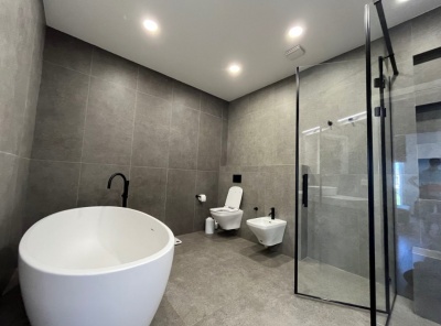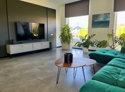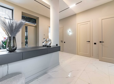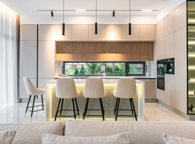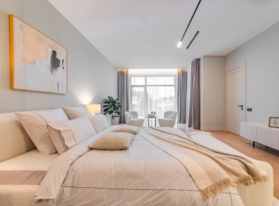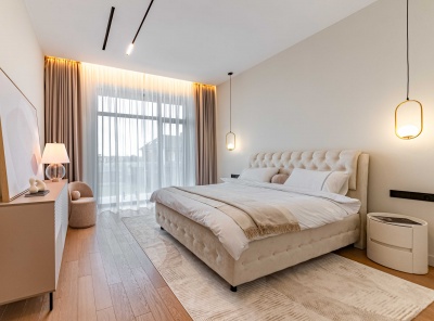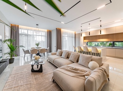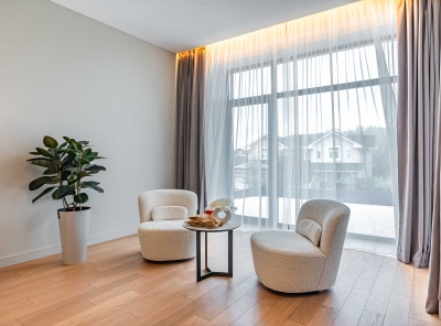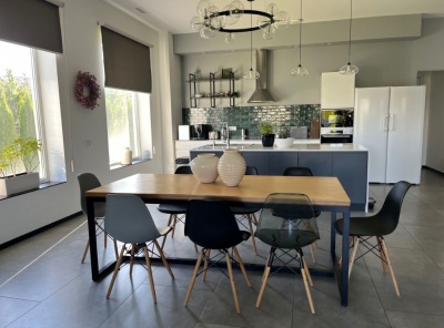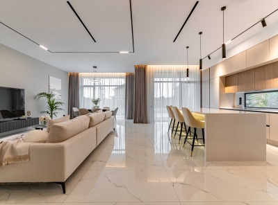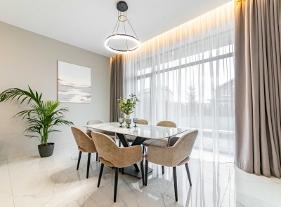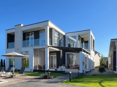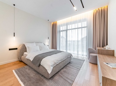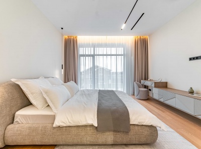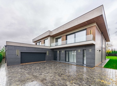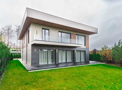Продажа загородного дома площадью 454 кв.м. Новорижское шоссе 23 км от МКАД. Коттеджный посёлок Новорижский. Современный коттедж с лаконичным фасадом в стиле минимализм, выполненный в сочетании светлой штукатурки, декоративных панелей и панорамного остекления. Архитектура подчеркивает прямые линии и чистые формы, а продуманная геометрия объемов придает дому выразительность и легкость. Внутреннее пространство дома оформлено в современном стиле с акцентом на функциональность и комфорт.