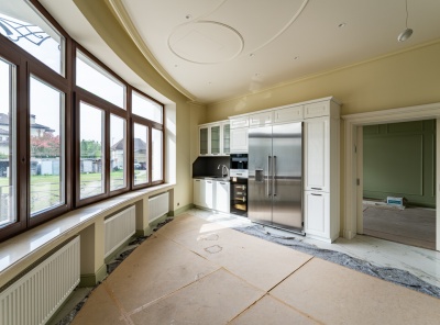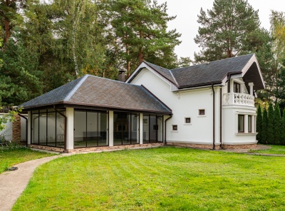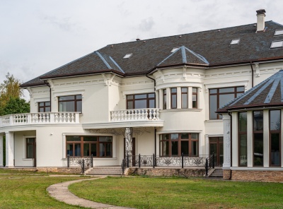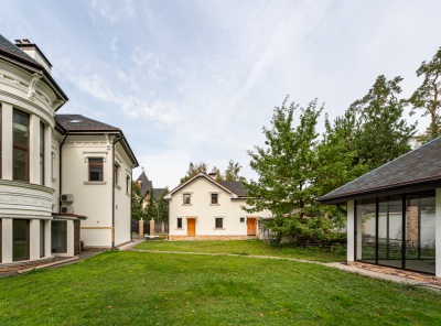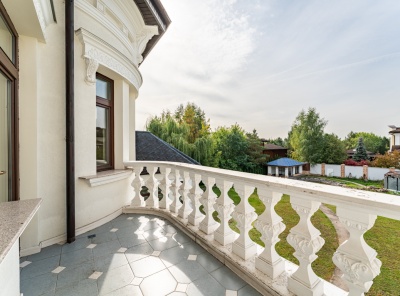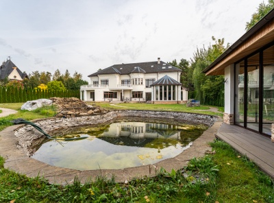 Продажа загородного дома площадью 1407 кв.м. Новорижское шоссе, 9 км от МКАД. Коттеджный поселок Никольская Слобода. Просторный роскошный особняк раскинулся лицом к солнцу, гостиная со вторым светом и камином, а также кухня и бассейн всегда будут купаться под его тёплыми лучами. Продуманный и ненавязчивый дизайн несомненно порадует, ведь каждая комната неповторима. В доме для удобства функционирует лифт. На участке 35 соток, также расположен гостевой дом с остекленной трассой, оборудованной мангалом и сауной, и дом для персонала.