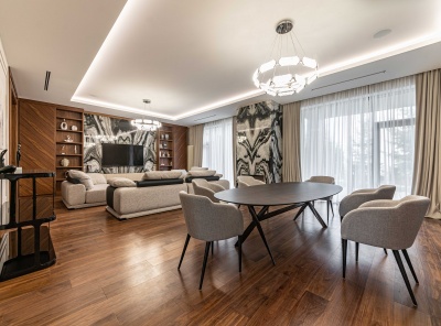 Продажа загородного дома общей площадью 696 кв.м. Новорижское шоссе, 17 км от МКАД. Коттеджный поселок Райт Хиллс. Коттедж построен в 2 этажа из кирпича в стиле Хайтек. Современный дом с изысканным фасадом и панорамным остеклением, который идеально сочетает архитектурную элегантность и практичность. Просторные и светлые комнаты образуют гармоничное пространство для жизни и отдыха. Участок 20 соток открывает широкие возможности для создания сада, террасы или зоны барбекю, а большие окна делают интерьер наполненным светом и уютом.