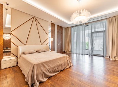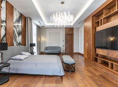 Продажа загородного дома общей площадью 1100 кв.м. Новорижское шоссе, 20 км от МКАД. Коттеджный поселок Агаларов Эстейт. Коттедж построен в 2 этажа. Большой, просторный, светлый дом с панорамным остеклением. Полностью меблирован и оснащен техникой от ведущих производителей. Второй свет с высотой потолков 7 метров. Установлена система умный дом и приточно-вытяжная система вентиляции с кондиционированием и увлажнением воздуха. Камин на биотопливе. Бассейн 12 метров, сауна, хамам, 5 спален. Квартира персонала. Гараж на 2 м/м в контуре дома.