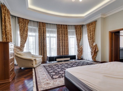Аренда загородного домовладения площадью 600 кв.м. Новорижское шоссе, 27 км от МКАД. Коттеджный поселок Грин Хилл. Дом 420 построен в 3 этажа, под ключ. В доме выполнен дизайнерский ремонт, в отделке использованы лучшие материалы, камень, венецианская штукатурка, мрамор. Оборудован всем необходимым, потолочная аккустика, шторы с электроприводами, теплый пол, видеонаблюдение. Участок 17 соток с ландшафтным дизайном, автополивом, парковым освещением, зонами барбекю и релаксации. На участке расположены СПА комплекс 100 кв.м.