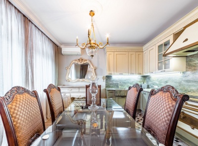 Аренда 7-комнатной квартиры площадью 323 кв.м. Метро Сокол, 5 минут пешком. Чапаевский переулок, дом 3. ЖК Триумф Палас. Светлая, просторная, уютная квартира с авторской отделкой выполненной в классическом стиле. Пол - паркетная доска из массива дерева ценных пород. В ванных комнатах полы с подогревом. Имеется вся необходимая бытовая техника от ведущих мировых производителей. Кондиционирование и приточно-вытяжная вентиляция. 2 балкона. Из окон открывается прекрасный вид на яблоневый сад и фонтан. В стоимость входят 2 м/м.